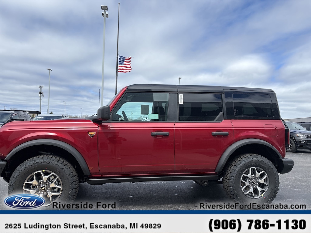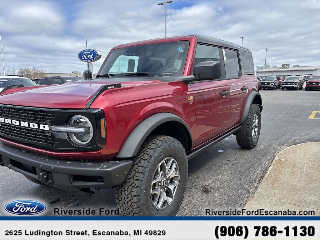 Navigation, 4x4, Heated Driver Seat, Back-Up Camera, Satellite Radio, iPod/MP3 Input, Onboard Communications System, Aluminum Wheels, Dual Zone A/C, Lane Keeping Assist, Blind Spot Monitor, Cross-Traffic Alert, WiFi Hotspot, Apple CarPlay®, Smart Device Integration. MP3 Player, Keyless Entry, Privacy Glass, Steering Wheel Controls, Child Safety Locks. Ford Badlands with Ruby Red Metallic Tinted Clearcoat exterior and Black Onyx interior features a V6 Cylinder Engine with 315 HP at 5500 RPM*.