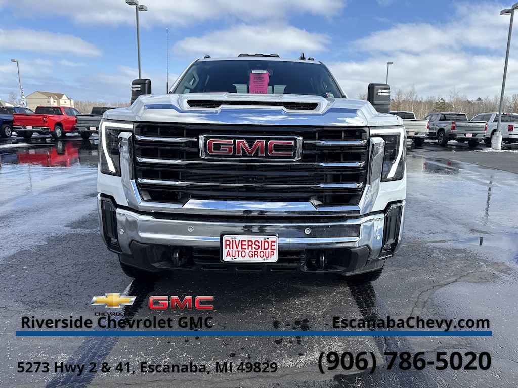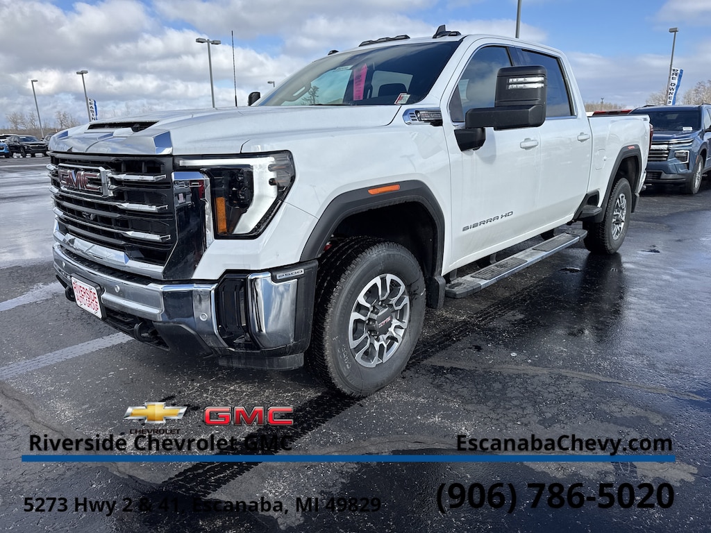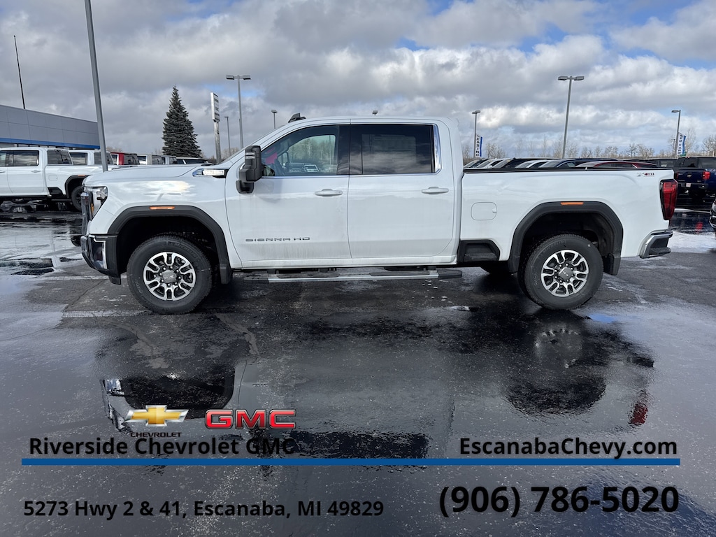 X31 OFF-ROAD AND PROTECTION PACKAGE includes (X31) Off-Road suspension with Twin-tube Rancho shocks, (JHD) Hill Descent Control and (NZZ) skid plates (transfer case and oil pan), (CGN) spray-on bedliner, (RIA) All-weather floor liners, LPO and X31 badge Includes (PXD) 18 machined aluminum wheel with Dark Grey metallic accents and (QF6) LT275/70R18E all-terrain, blackwall tires. PREFERRED PACKAGE includes (UET) In-Vehicle Trailering App. (PZ8) Hitch Guidance with Hitch View, (KSG) Adaptive Cruise Control and (UF2) cargo bed LED lighting; also includes (UG1) Universal Home Remote and (A48) rear sliding power window Includes (R7O) Cloth Rear Seat Storage Package.), SIERRA HD PRO SAFETY PLUS PACKAGE includes (UKV) Trailer Side Blind Zone Alert, (UFG) Rear Cross Traffic Alert, (UVN) Bed View Camera, (UV2) HD Surround Vision, (UD5) Front and rear park assist and (TRG) Trailer Camera Provisions (Includes (UET) In-Vehicle Trailering App. SLE CONVENIENCE PACKAGE includes (CJ2) dual climate control, (A2X) 10-way power driver seat including power lumbar, (N37) manual tilt/telescoping steering column, (T3U) LED fog lights and (U01) Roof Marker Lamps, ASSIST STEPS, CHROMED TUBULAR, 6 RECTANGULAR CAB LENGTH (factory installed), REMOTE START PACKAGE includes (BTV) Remote Start, (UTJ) content theft alarm and (C49) rear-window defogger, MIRRORS, OUTSIDE POWER-ADJUSTABLE VERTICAL TRAILERING with heated and auto-dimming upper glass, lower convex mirrors, turn signal indicators, puddle lamps, (U12) perimeter lighting, auxiliary lighting, power folding/manual extending (extends 3.31 [84.25mm]), Black Includes Perimeter Lighting and (DD8) auto-dimming rearview mirror.), TAILGATE, GMC MULTIPRO TAILGATE with six functional load/access features NOTE: Auto release can be disabled if ball hitch is installed. See Owners manual for details, SLE HEATED PACKAGE includes (KA1) heated driver and passenger seats, (KI3) heated steering wheel, AUDIO SYSTEM, 13.4 DIAGONAL PREMIUM GMC INFOTAINMENT SYSTEM WITH GOOGLE BUILT IN APPS SUCH AS NAVIGATION AND VOICE ASSISTANCE includes color touch-screen, multi-touch display, AM/FM stereo, Bluetooth® streaming audio for music and most phones; featuring wireless Android Auto® and Apple CarPlay® capability for compatible phones (STD), ENGINE, 6.6L V8 with Direct Injection and Variable Valve Timing, gasoline, (401 hp [299 kW] @ 5200 rpm, 464 lb-ft of torque [629 N-m] @ 4000 rpm) (STD), TRANSMISSION, 10-SPEED AUTOMATIC (STD), SEAT, CLOTH REAR WITH STORAGE PACKAGE 60/40 folding bench, includes seatback storage on left and right side, center fold out armrest with 2 cupholders, (includes child seat top tether anchor).