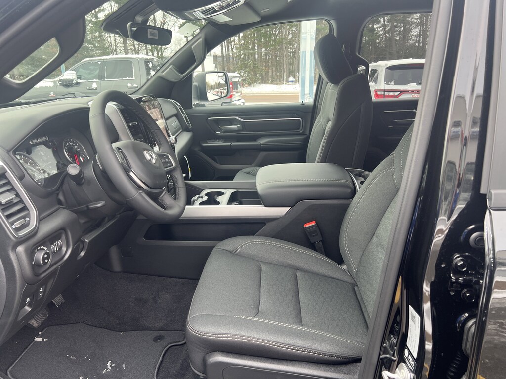 4x4, Back-Up Camera, iPod/MP3 Input, CD Player, Trailer Hitch, Remote Engine Start, Blind Spot Monitor, Smart Device Integration, Cross-Traffic Alert, WiFi Hotspot, Lane Keeping Assist, Apple CarPlay® Ram Big Horn with Diamond Black Crystal Pearlcoat exterior and Black interior features a 8 Cylinder Engine with 395 HP at 5600 RPM*.