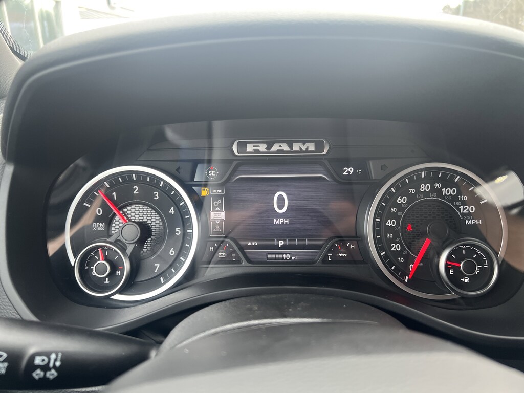 ENGINE: 5.7L V8 HEMI MDS VVT ETORQUE Active Noise Control System, Heavy Duty Engine Cooling, Passive Tuned Mass Damper, GVWR: 7,100 lbs, Dual Rear Exhaust w/Bright Tips, G/T Exhaust, 18 Aluminum Spare Wheel, BIG HORN LEVEL 2 EQUIPMENT GROUP SiriusXM Radio Service, Power Adjustable Pedals, Leather Wrapped Steering Wheel, 12 Touchscreen Display, Glove Box Lamp, Auto Power-Folding Mirrors, 115V Auxiliary Rear Power Outlet, Media Hub w/2 Charge Only USBs, Heated Front Seats, Security Alarm, Black Premium Power Mirrors, Premium Overhead Console, 9 Amplified Speakers w/Subwoofer, Disassociated Touchscreen Display, Body Color Fender Flares, Remote Tailgate Release, 115V Auxiliary Power Outlet, LED Dome Lamp w/On/Off Switch, Universal Garage Door Opener, 2nd Row In Floor Storage Bins, Sun Visors w/Illuminated Vanity Mirrors, LED Footwell Lighting, Rear Window Defroster, Rear View Auto Dim Mirror, Rear Power Sliding Window, GPS Navigation, Overhead LED Lamps, Wheels: 20 x 9 Aluminum Chrome Clad, NIGHT EDITION Tires: 275/55R20 OWL All Season, Bridgestone Brand Tires, Accent Color Premium Power Mirrors, Exterior Mirrors w/Supplemental Signals, Black Headlamp Bezels, Exterior Mirrors Courtesy Lamps, Grille Black Surround Black Mesh, Auto Power-Folding Mirrors, Wheels: 20 x 9.0 Aluminum Painted Clad, Auto Dim Exterior Driver Mirror, Black Exterior Truck Badging, Anti-Spin Differential Rear Axle, Accent Color Door Handles, Accent Color Tailgate Handle, Black Interior Accents, Dual Exhaust w/Black Tips, Body Color Front Bumper, Body Color Rear Bumper w/Step Pads, Black Tail Lamp Bezels, RAM Grille Badge - Black, Black Painted Exterior Mirrors Caps, OFF ROAD GROUP Front Extra HD Shock Absorbers, Off Road Decals, Rear Extra HD Shock Absorbers, Steering Gear Skid Plate, Tow Hooks, E-Locker Rear Axle, Transfer Case Skid Plate, Fuel Tank Skid Plate, Raised Ride Height, Selec-Speed Control, TRANSMISSION: 8-SPEED AUTOMATIC (8HP75). Privacy Glass, Keyless Entry, Child Safety Locks, Electronic Stability Control, Bucket Seats.